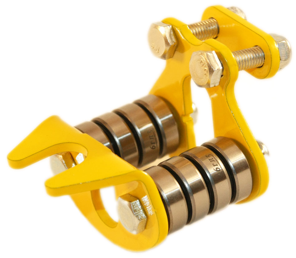 Универсальная система креплений подходит к большинству классических и увеличенных карабинов. Вставляете ролик-переправа в карабин, зажимаете два болта - и у вас готовая система перемещения грузов.
