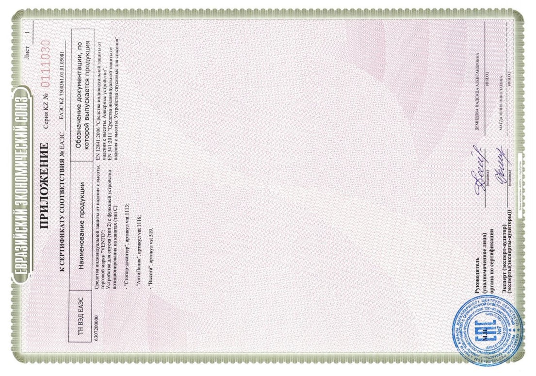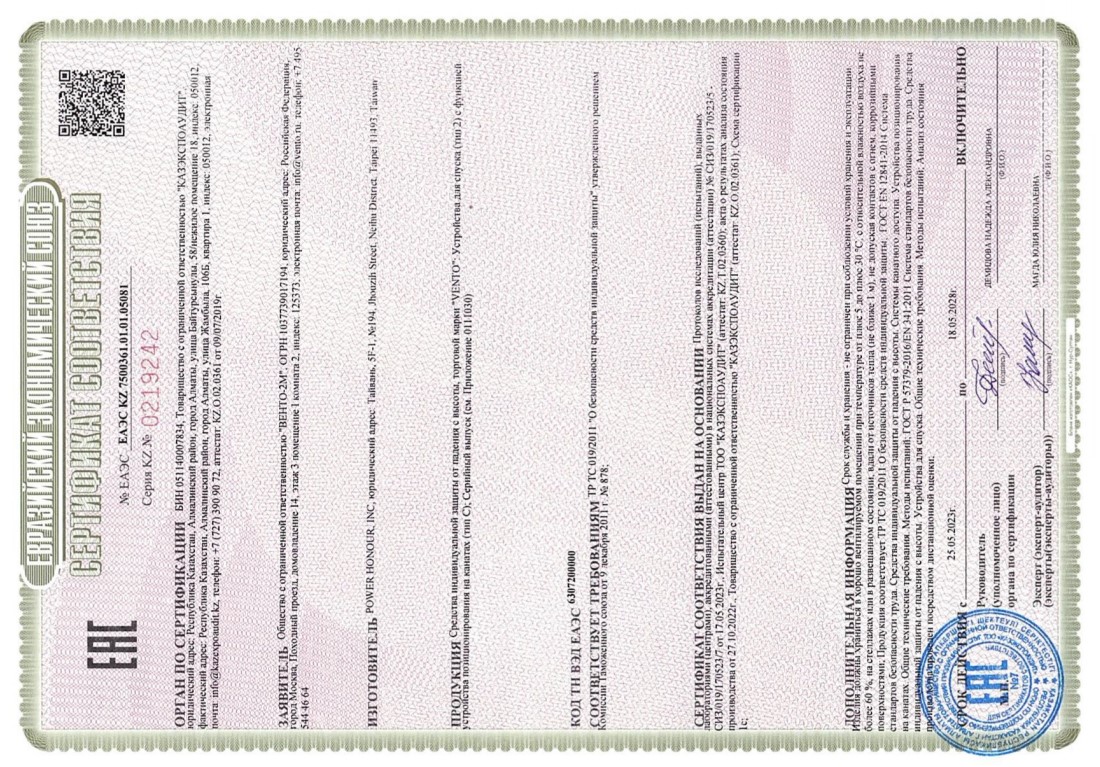 • Технические характеристики по ГОСТ Р 57379-2016 / EN 341:2011: