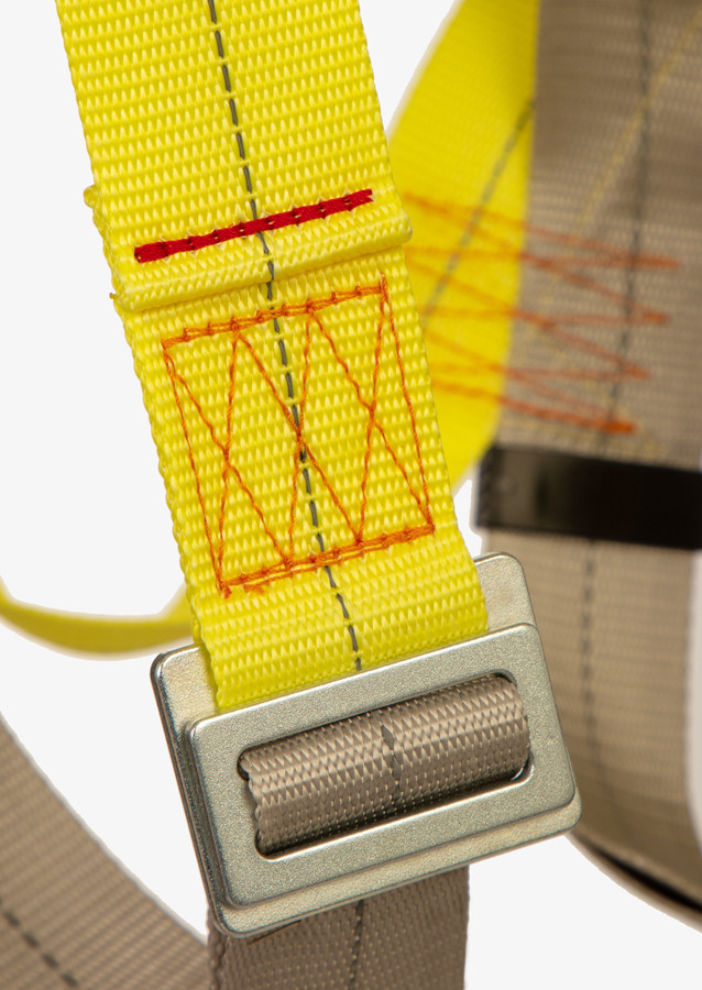 Привязь выполнена из ленты со световозвращающей нитью, что необходимо при работе в условиях ограниченной освещенности и видимости.