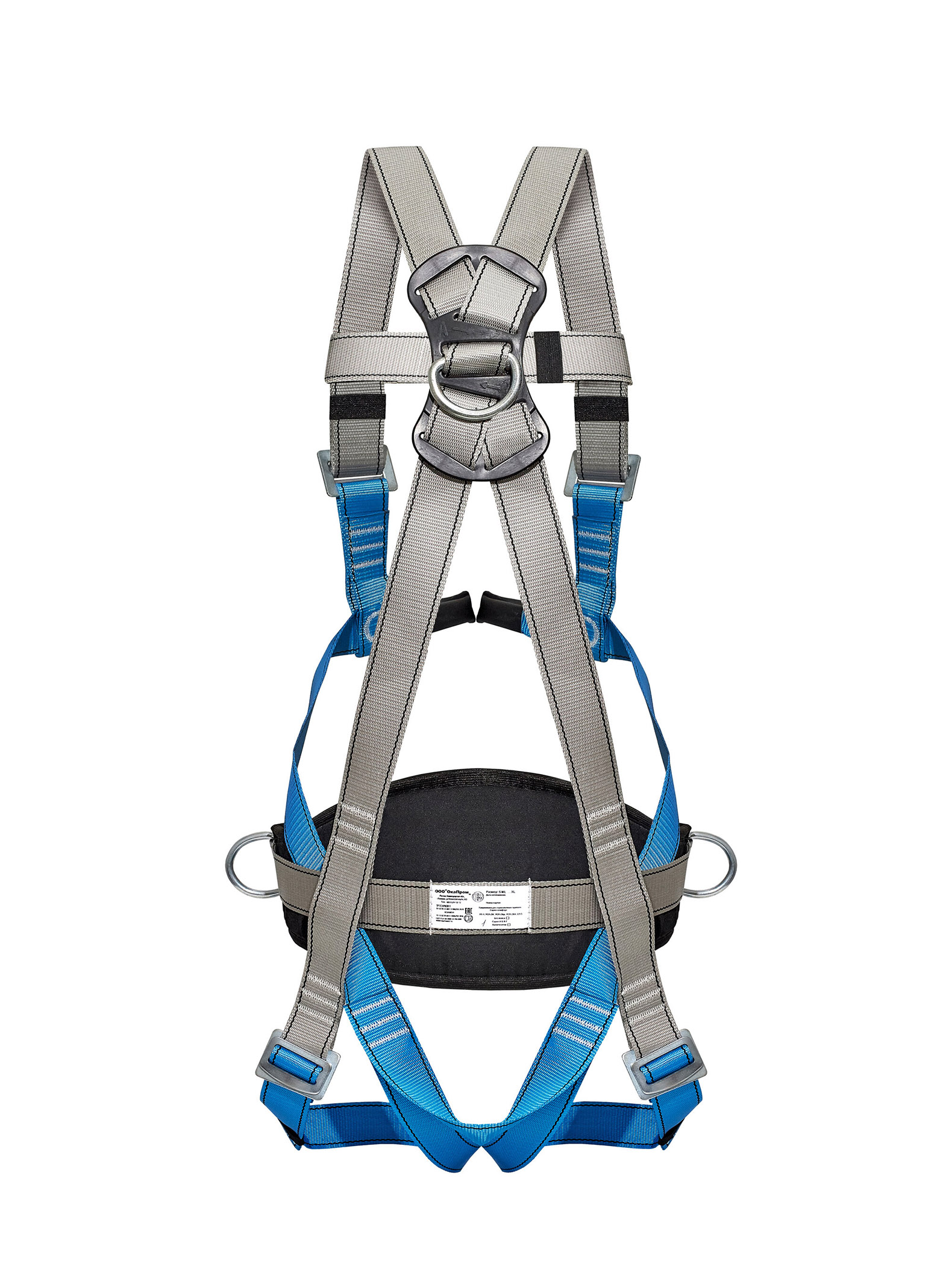Состоит из ремня с пряжкой, наплечных и набедренных лямок, эргономичного кушака, имеет 4 точки крепления стропа. Два D-кольца расположены на поясе – для позиционирования и удержания, одно на спине – для удержания и страховки, и петли на груди – для спасательных работ, страховки, поднятия и спуска рабочих в замкнутых пространствах, экстренной эвакуации.